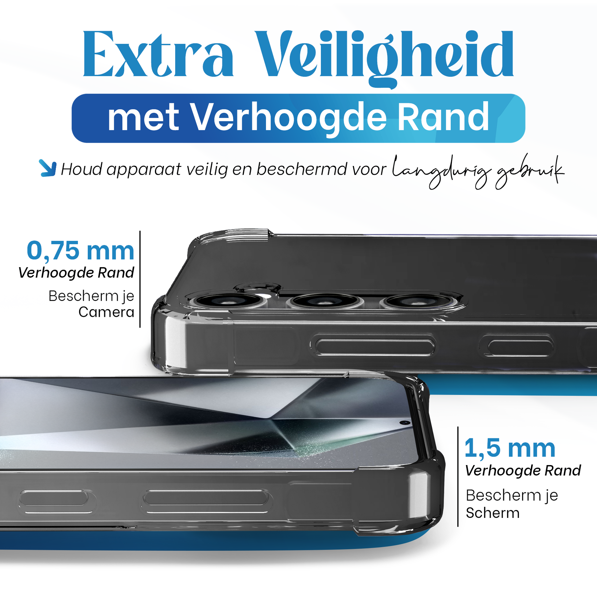 • Verhoogde Randen: Extra bescherming voor het scherm en de camera.