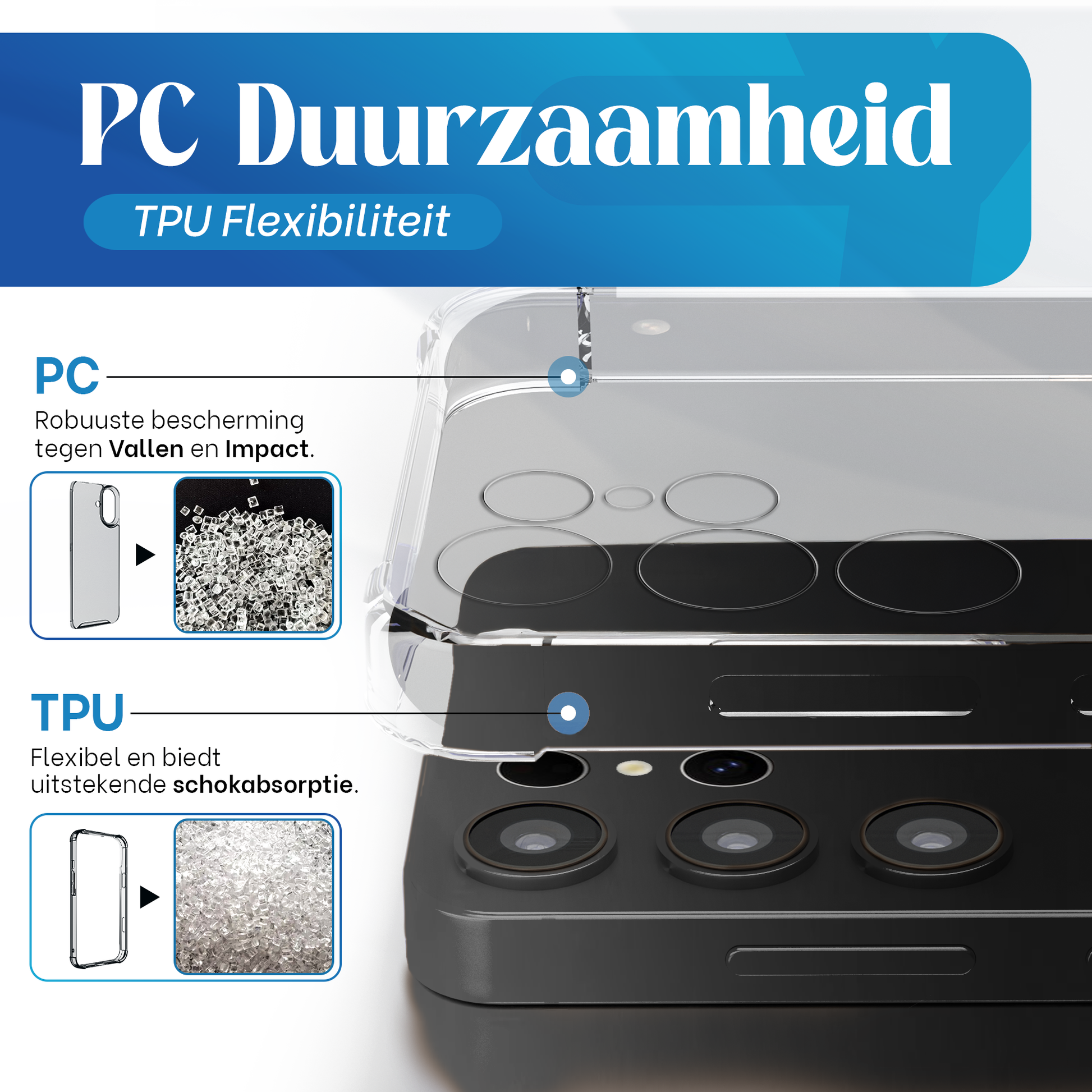 • Materiaal: Duurzaam TPU + PC met versterkte hoeken