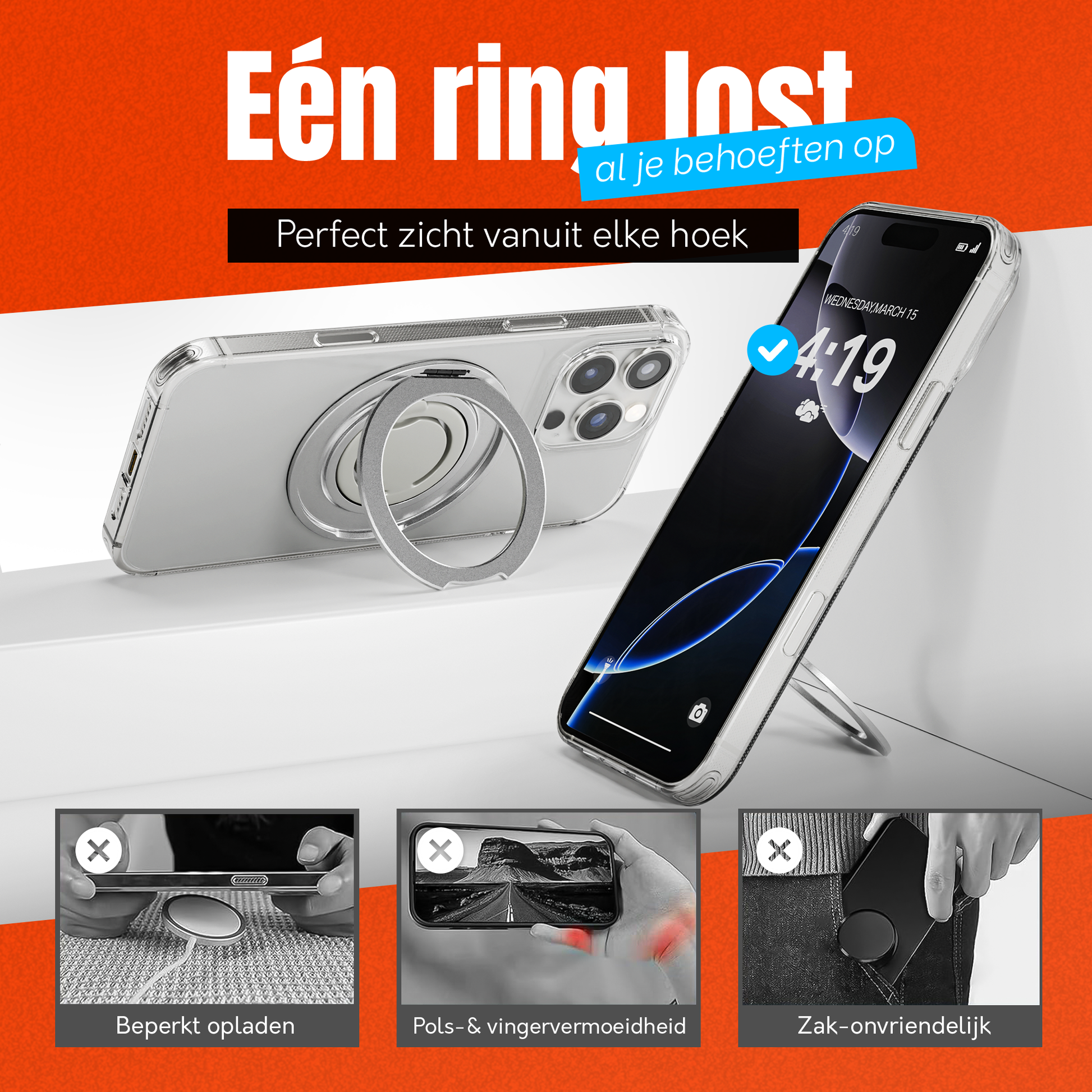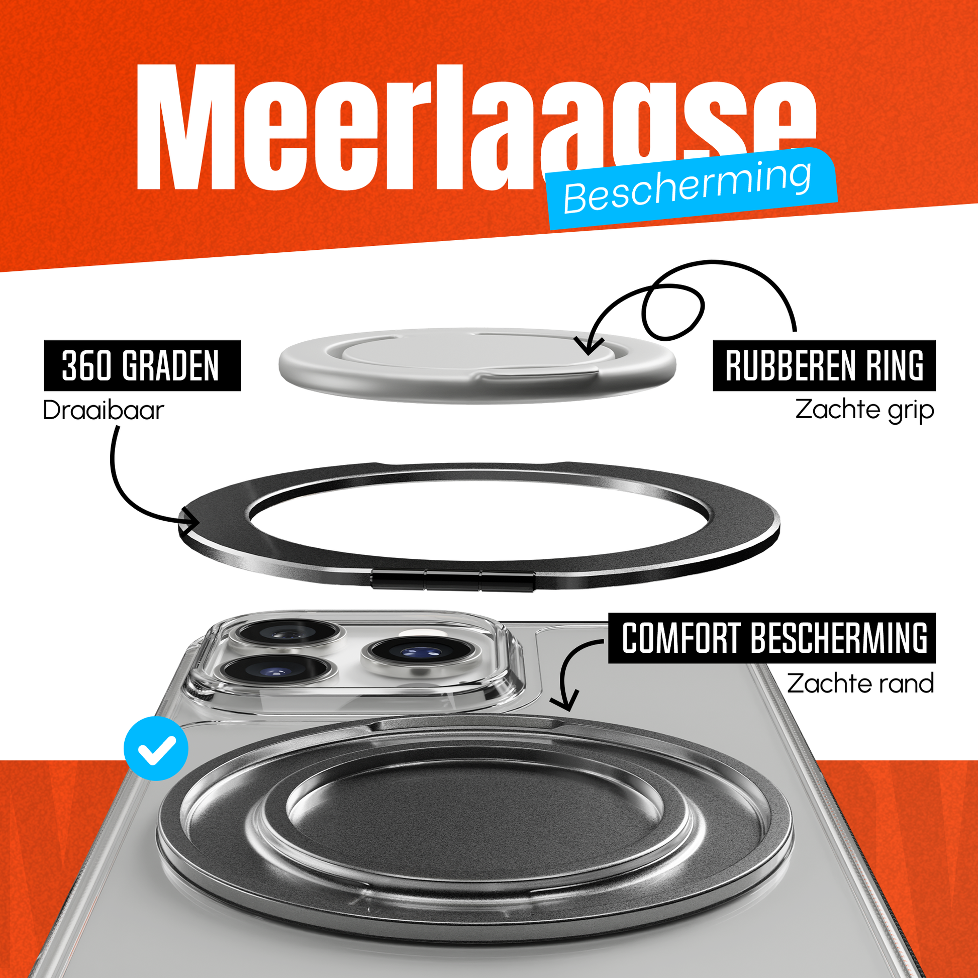 • Ring stand voor extra grip én als kickstand te gebruiken