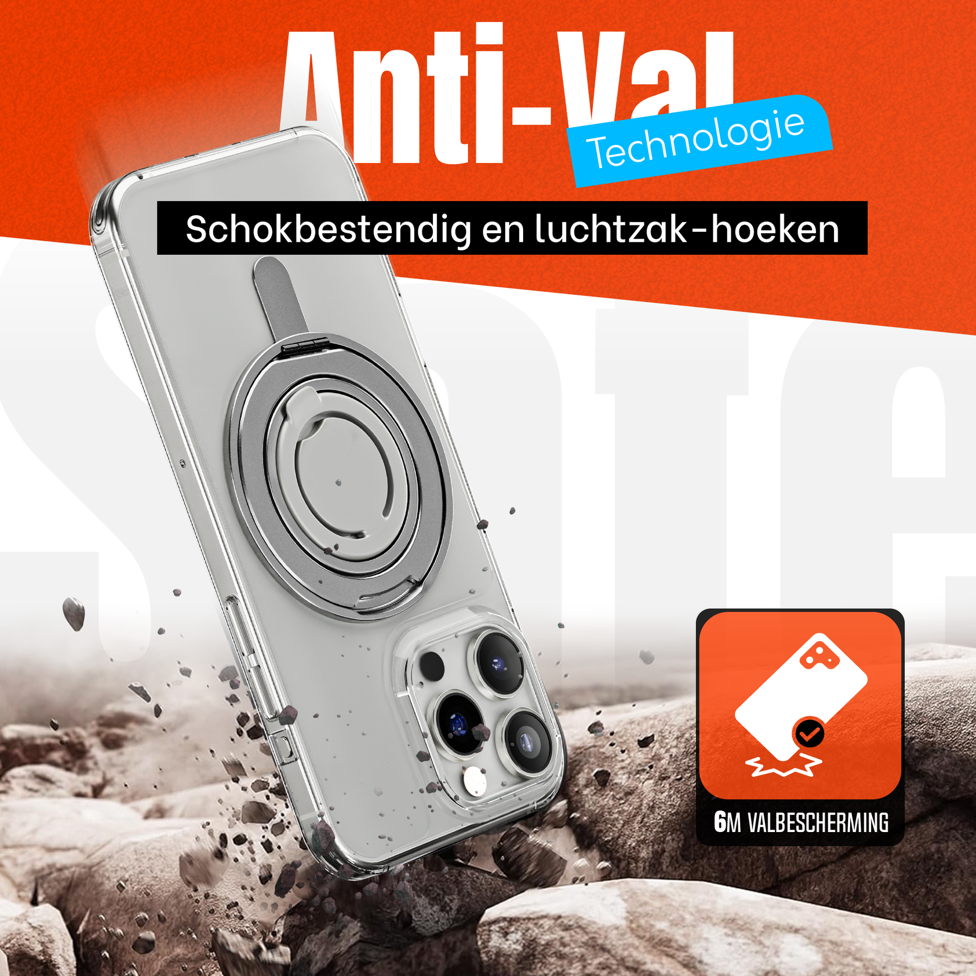 iPhone 16 Pro Max Hoesje – Shockproof MagSafe Case met 360 Ring Stand Transparant