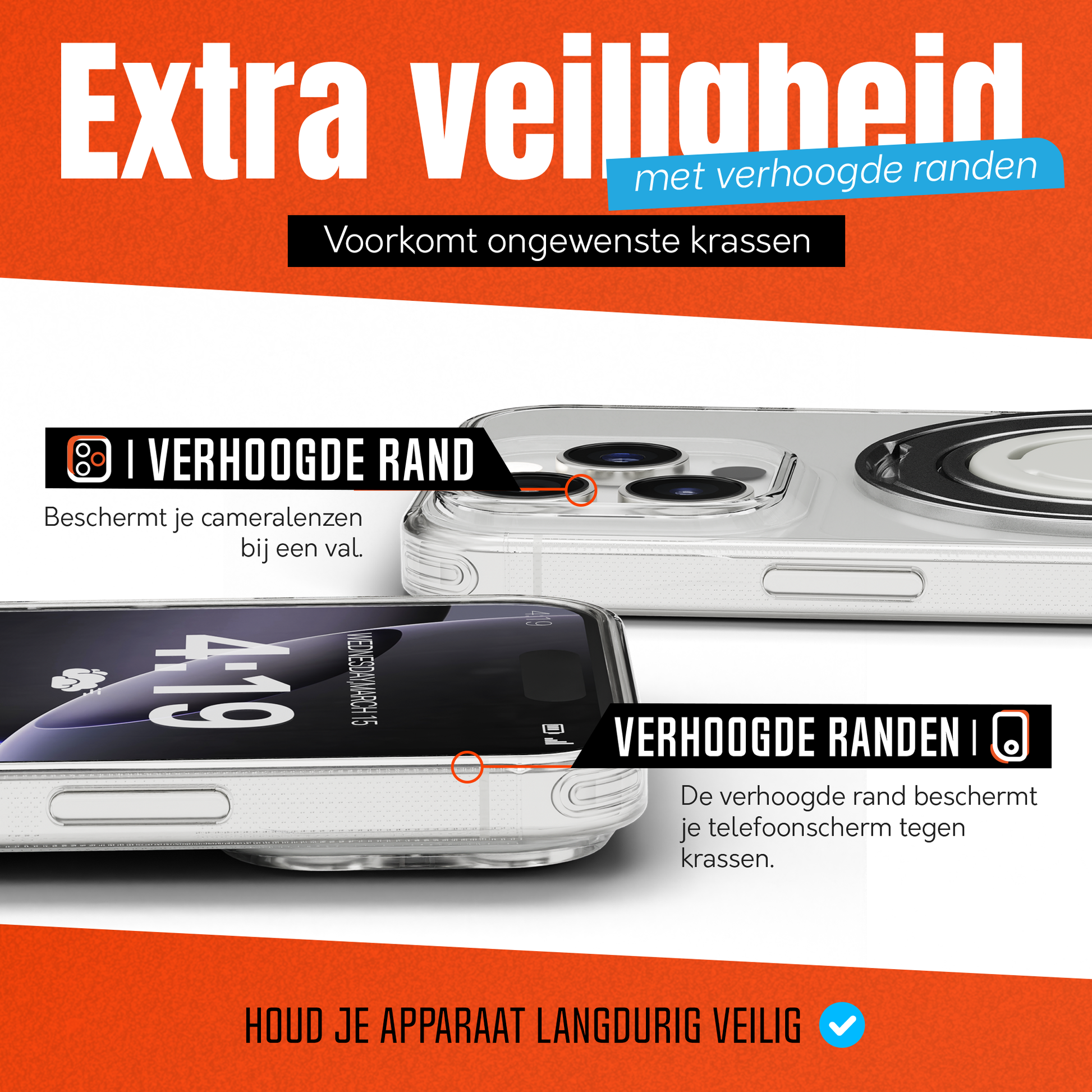 • Verhoogde randen ter bescherming van camera en scherm