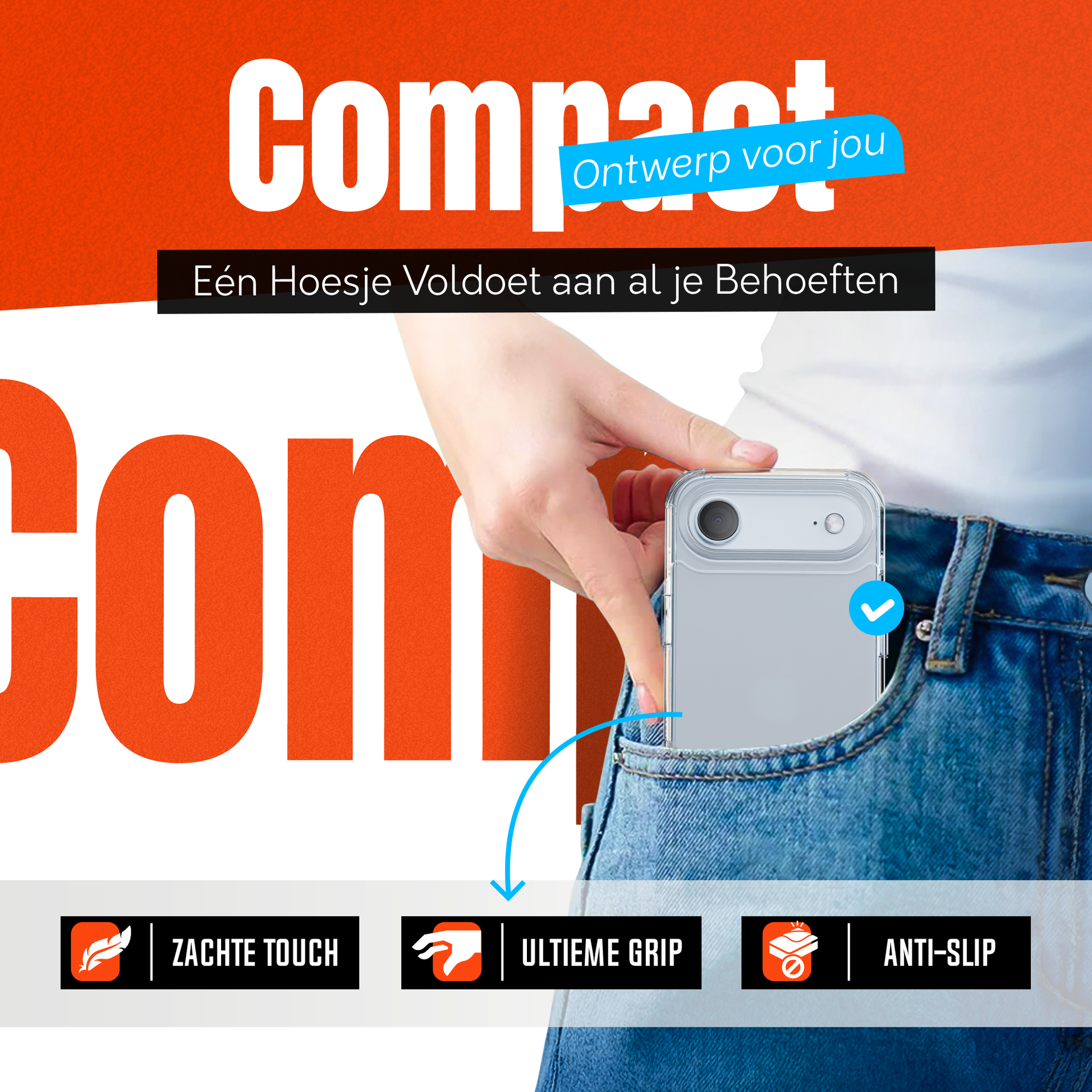 Bescherm je iPhone 17 met dit kristalheldere, transparante hoesje dat het slanke ontwerp behoudt en tegelijkertijd betrouwbare bescherming biedt tegen krassen en lichte stoten. Inbegrepen is een hoogwaardige screenprotector die ervoor zorgt dat je display helder en responsief blijft. Ontworpen voor een perfecte pasvorm, biedt deze combinatie deskundige bescherming zonder extra volume toe te voegen, met volledige toegang tot alle knoppen en poorten. Ideaal voor gebruikers die elegantie en duurzame bescherming in één pakket zoeken.