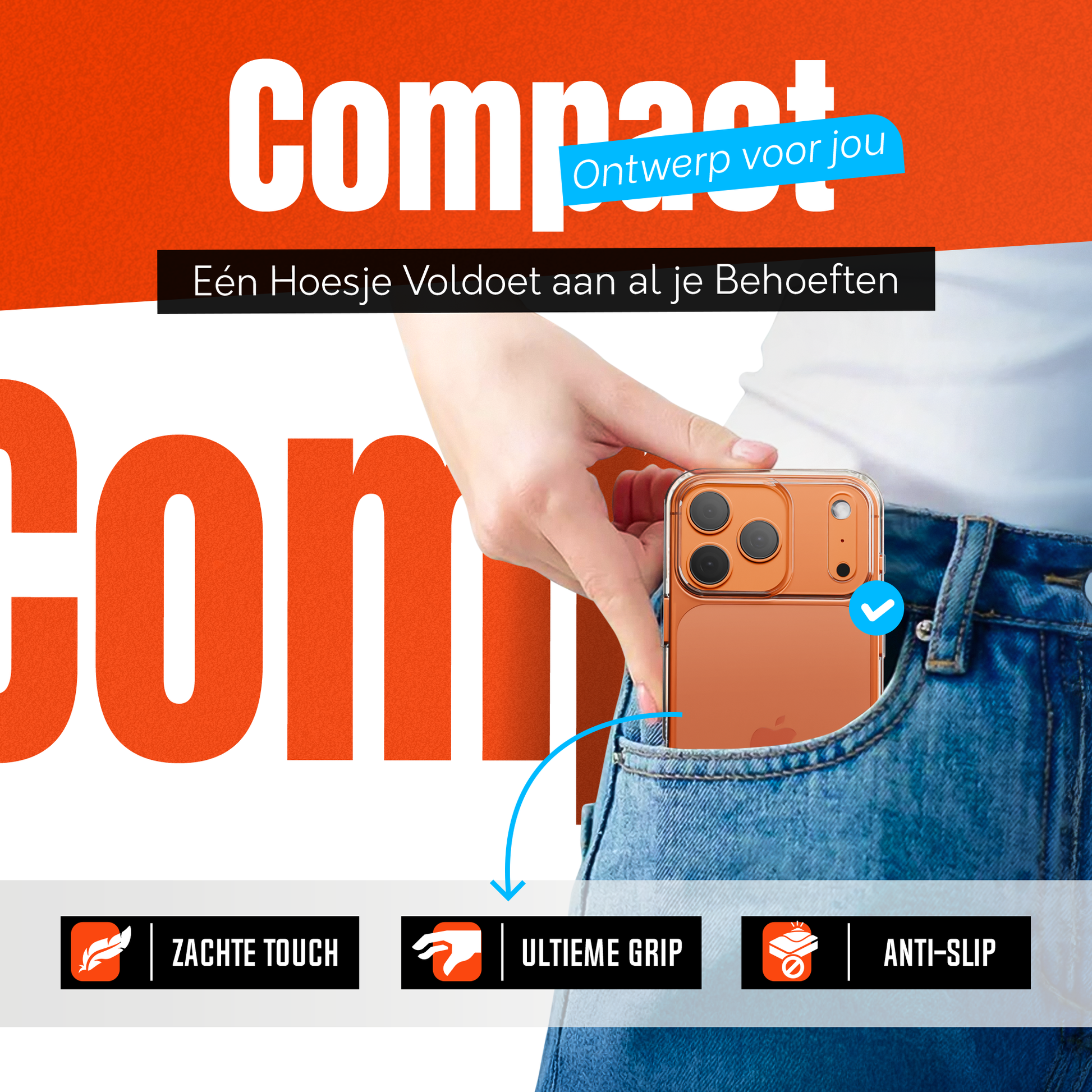 Bescherm je iPhone 17 Pro Max met dit kristalheldere, transparante hoesje dat het slanke ontwerp behoudt en tegelijkertijd betrouwbare bescherming biedt tegen krassen en lichte stoten. Inbegrepen is een hoogwaardige screenprotector die ervoor zorgt dat je display helder en responsief blijft. Ontworpen voor een perfecte pasvorm, biedt deze combinatie deskundige bescherming zonder extra volume toe te voegen, met volledige toegang tot alle knoppen en poorten. Ideaal voor gebruikers die elegantie en duurzame bescherming in één pakket zoeken.