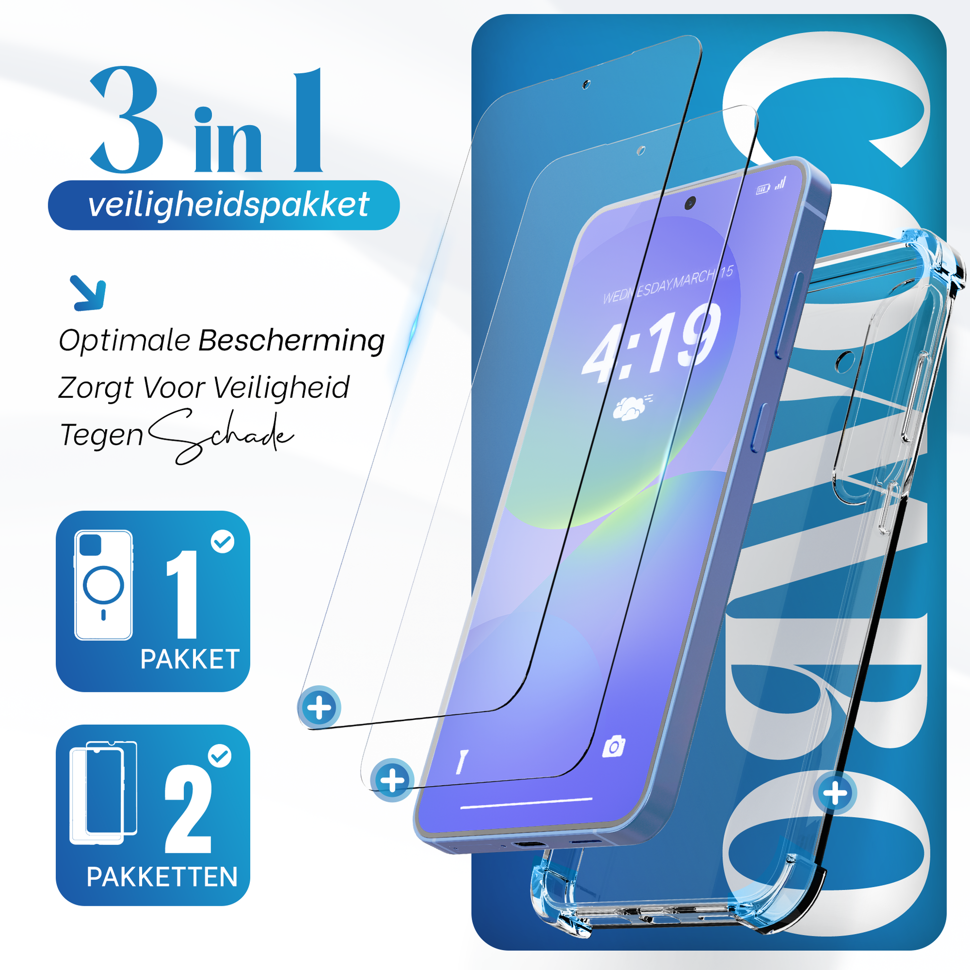 - Screenprotectors: 9H gehard glas (2 inbegrepen)