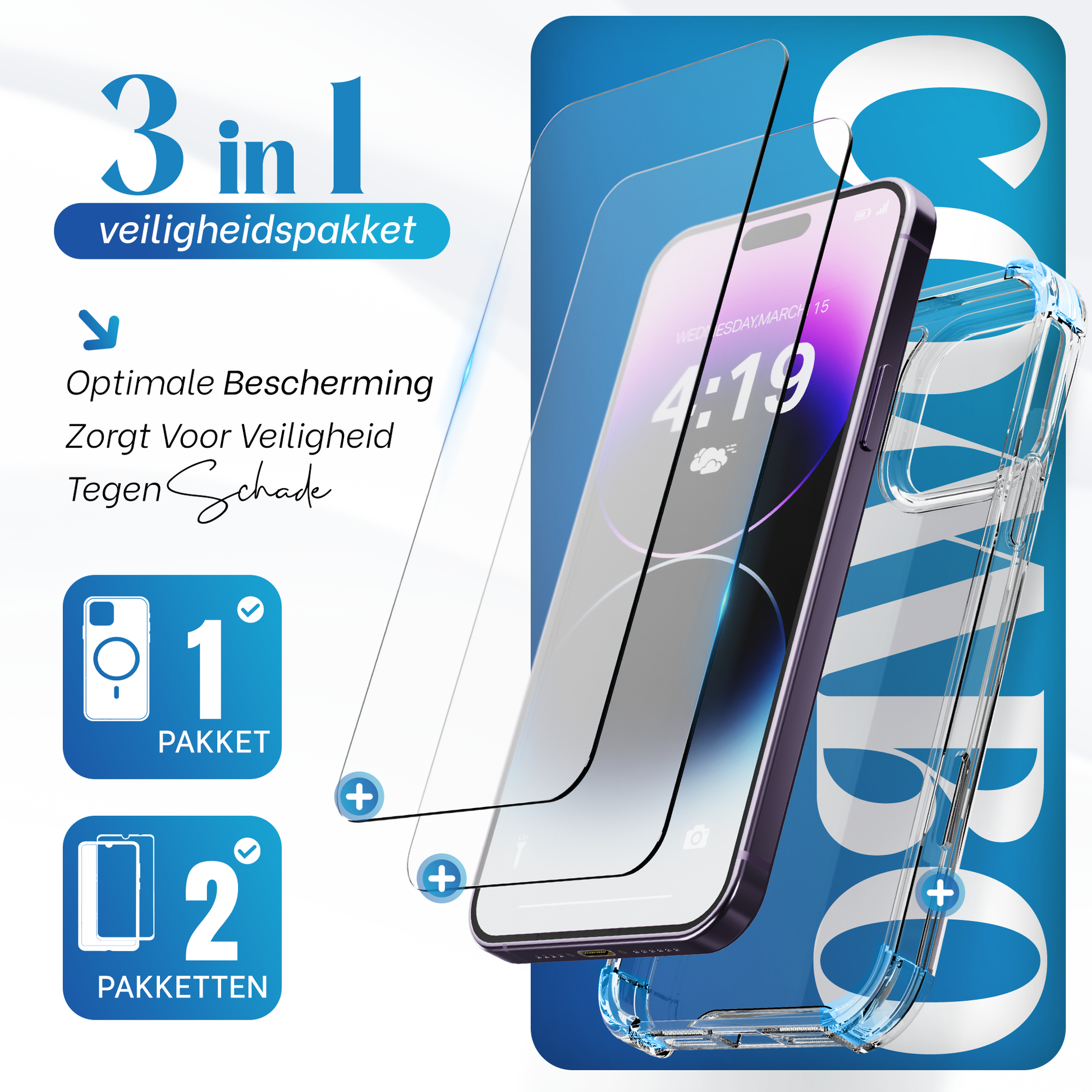 Geef je iPhone 14 Pro de ultieme bescherming met de iTech COMBO, een 3-in-1 accessoirepakket dat je toestel beschermt tegen krassen, stoten en vlekken. Deze set bevat 2 premium geharde glazen screenprotectors, en 1 transparante hoes, zodat je iPhone volledig beschermd blijft zonder in te boeten op stijl.