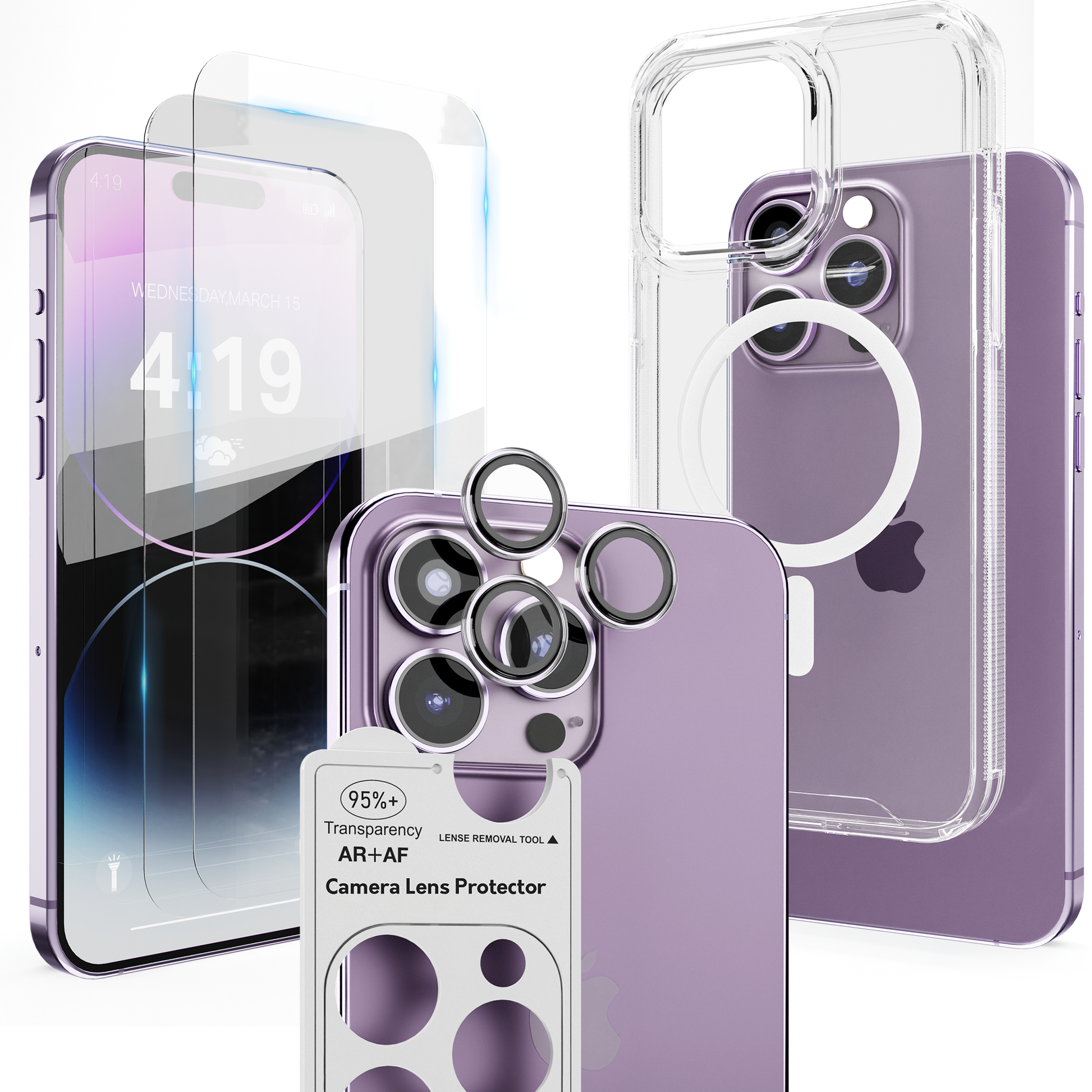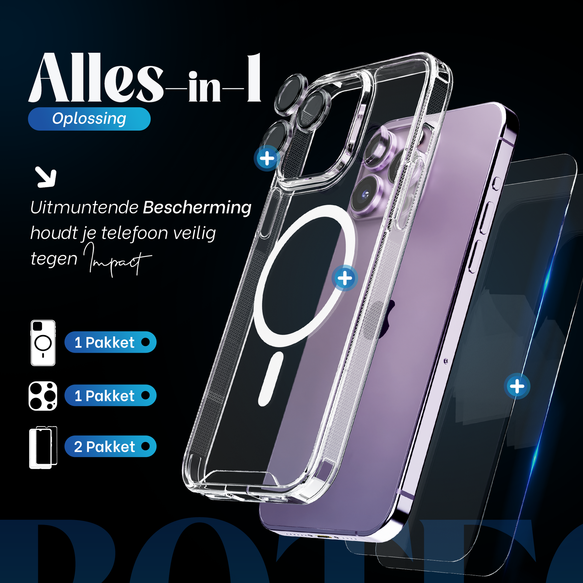 Geef je iPhone 14 Pro Max de ultieme bescherming met de iTech COMBO, een 4-in-1 accessoirepakket dat je toestel beschermt tegen krassen, stoten en vlekken. Deze set bevat 2 premium geharde glazen screenprotectors, 1 camerabescherming en 1 transparante hoes, zodat je iPhone volledig beschermd blijft zonder in te boeten op stijl.