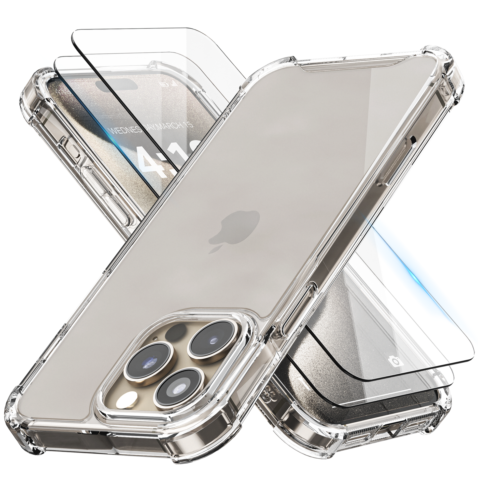 Geef je iPhone 15 Pro de ultieme bescherming met de iTech COMBO, een 3-in-1 accessoirepakket dat je toestel beschermt tegen krassen, stoten en vlekken. Deze set bevat 2 premium geharde glazen screenprotectors,  en 1 transparante hoes, zodat je iPhone volledig beschermd blijft zonder in te boeten op stijl.