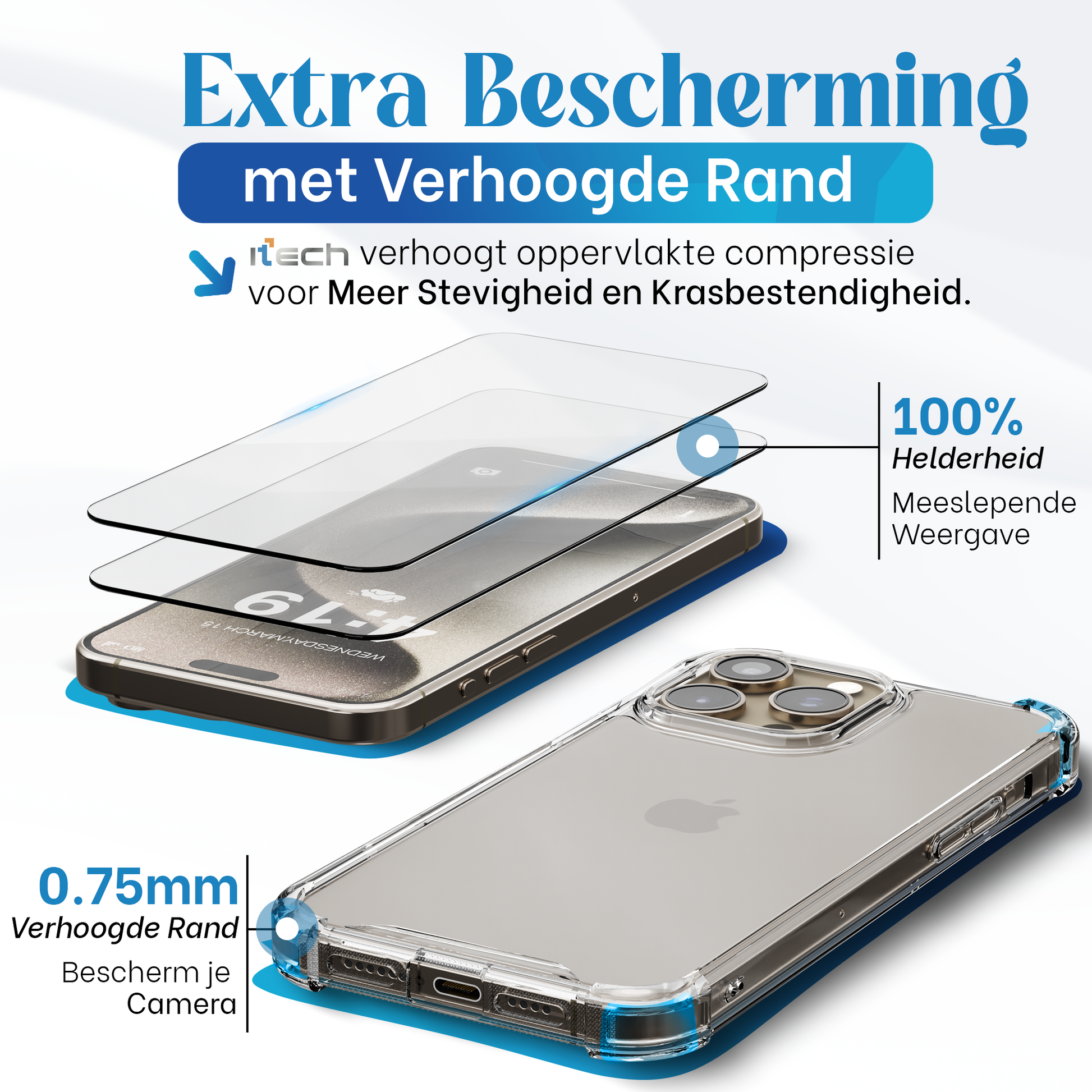 Bescherm je iPhone 15 Pro Max met de iTech COMBO – de perfecte combinatie van duurzaamheid, helderheid en bescherming.