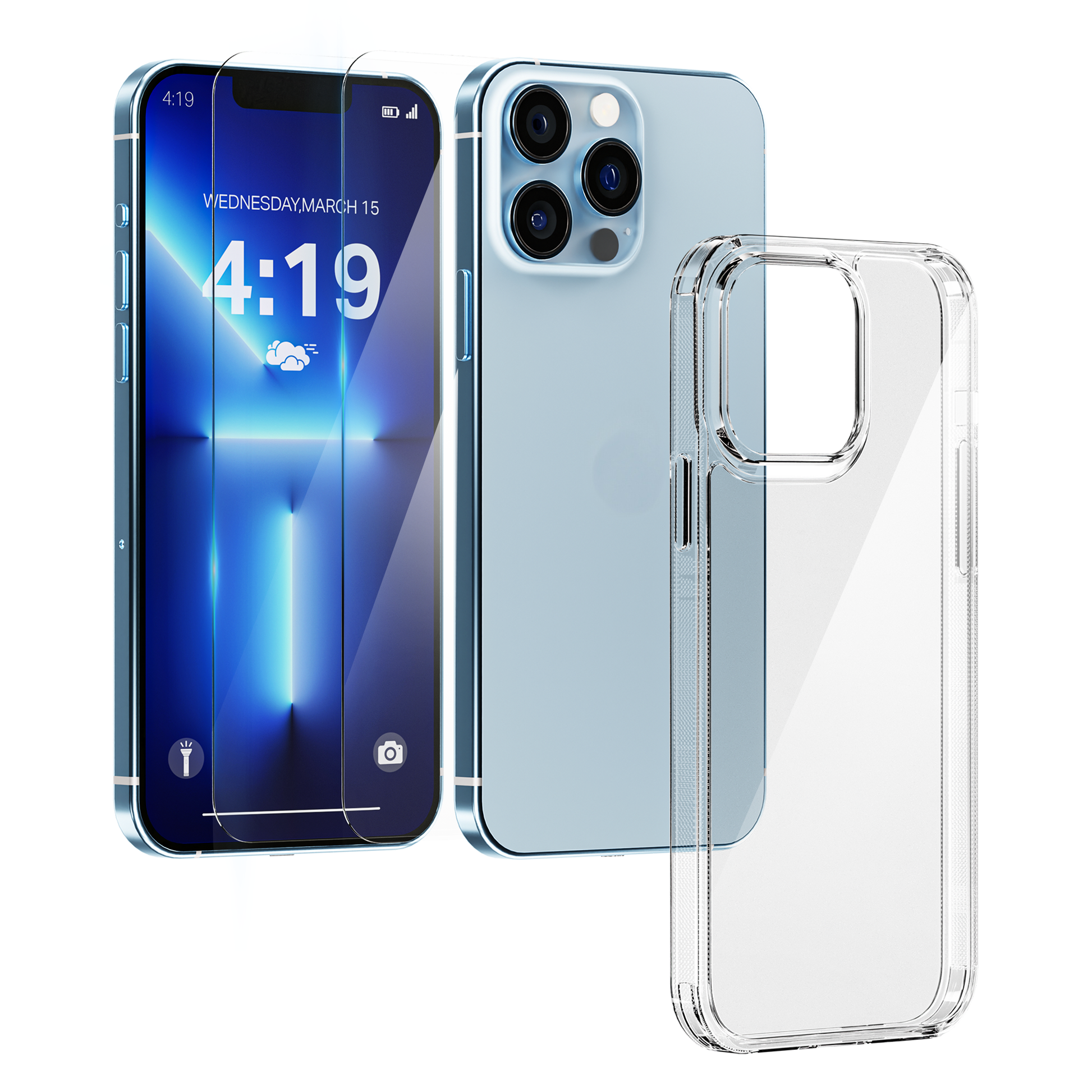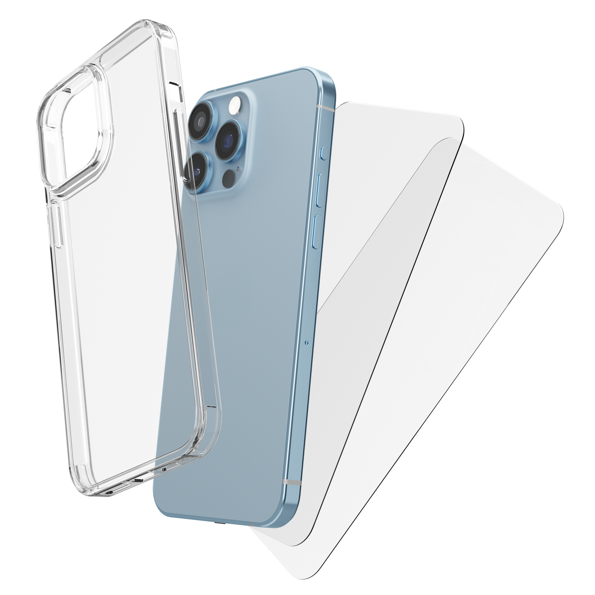 Bescherm je iPhone 13 Pro Max optimaal met de My Case Combo, bestaande uit een kristalheldere transparante hoes en twee premium gehard glas screenprotectors. Deze set biedt extra veiligheid en volledige bescherming tegen vallen, krassen en dagelijkse slijtage, terwijl het originele ontwerp van je telefoon zichtbaar blijft.