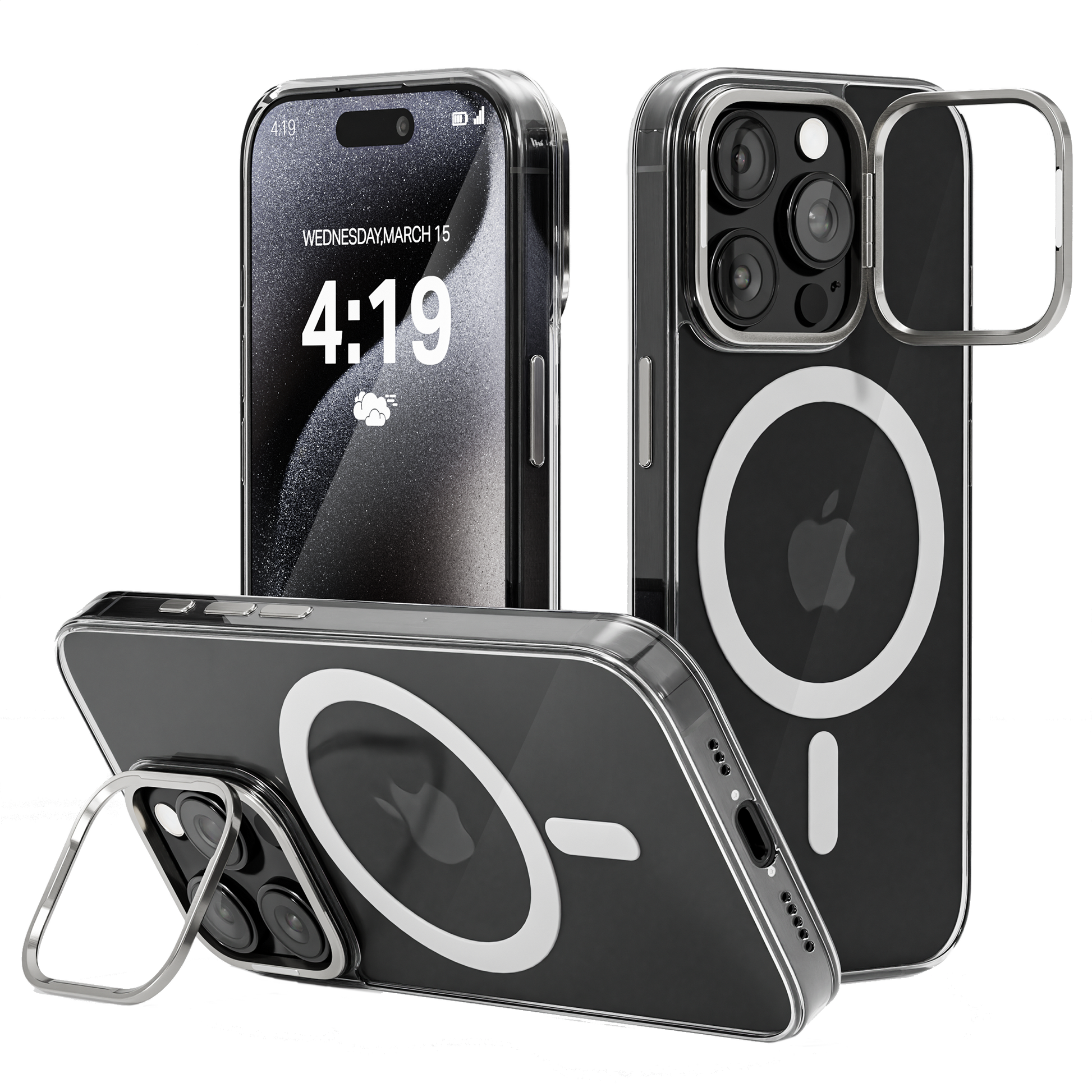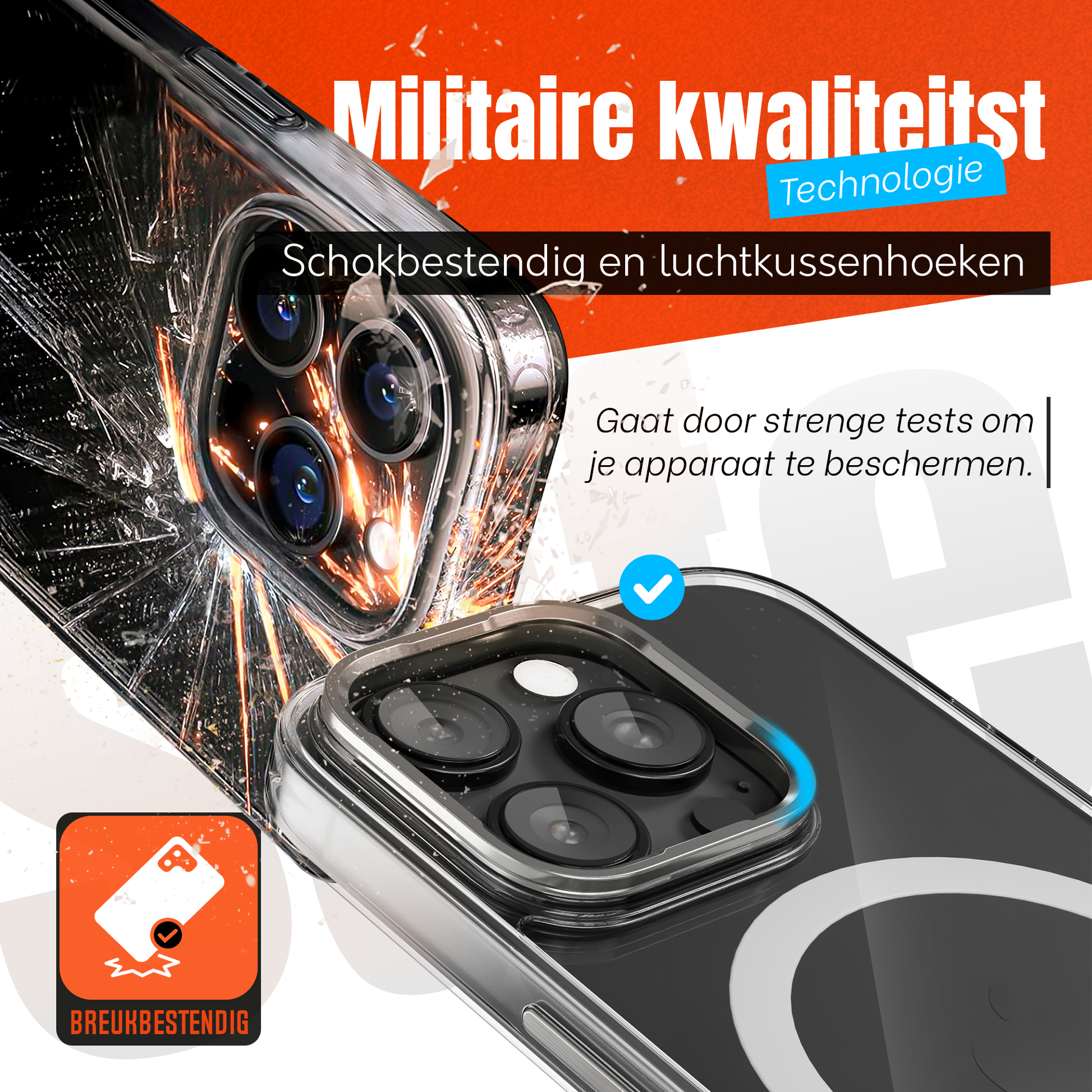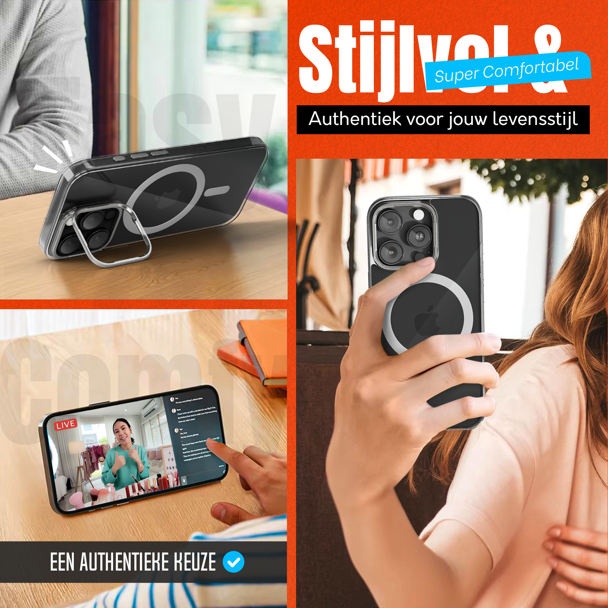 Ervaar een perfecte combinatie van stijl en bescherming met dit hoesje voor de iPhone 15 Pro Max. Het transparante ontwerp accentueert het originele design van je toestel, terwijl de metalen camera-stand en MagSafe-ring functioneel en gebruiksvriendelijk zijn. De witte afwerking in combinatie met de opvallende oranje cameraknop geeft dit hoesje een onderscheidende look.