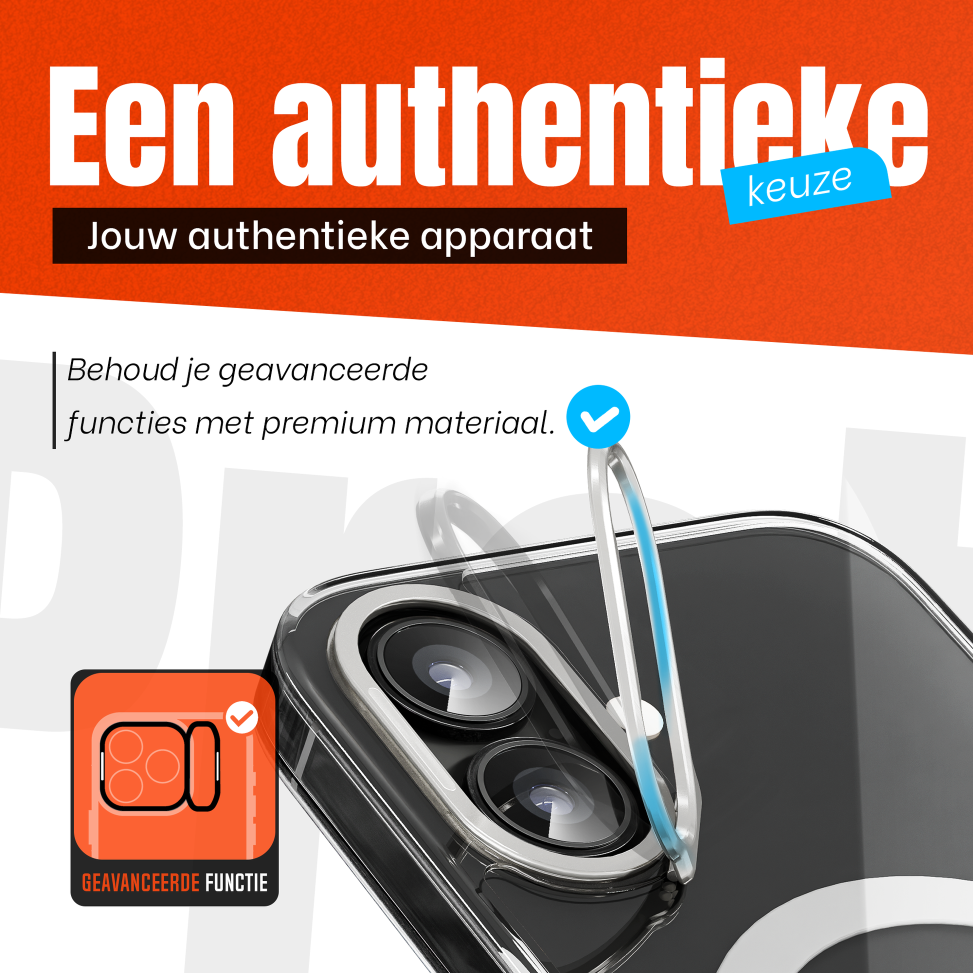 - Unieke oranje cameraknop – subtiel opvallend en stijlvol