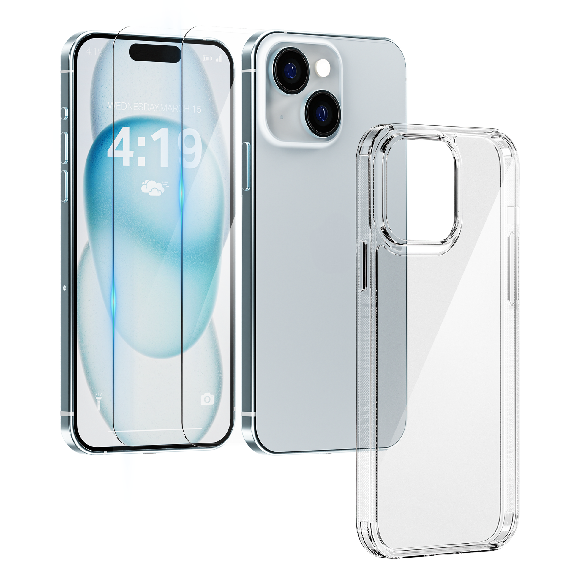 My Case Combo: Transparante Hoes met 2 Screenprotectors voor iPhone 15 – Extra Veiligheid