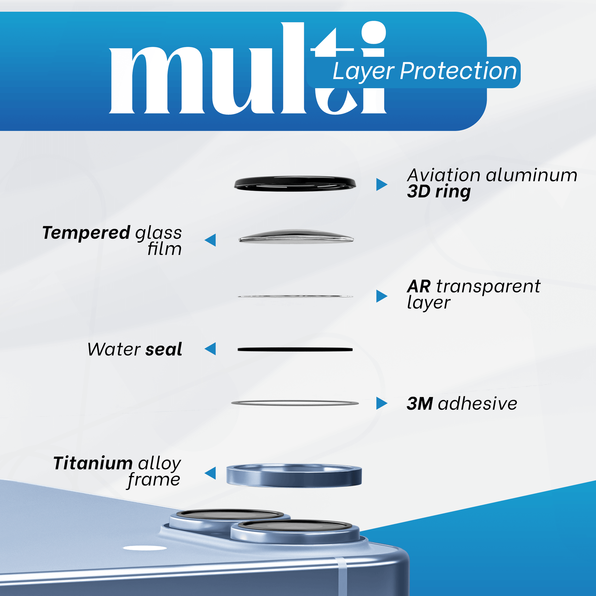 De REOVO Camera Protector voor iPhone 17 combineert een ultra-dunne 0,05 mm laag met een stevig titanium frame, waardoor je camerasysteem optimaal beschermd is tegen krassen en schokken zonder bulk toe te voegen. De Nevel Blauw afwerking geeft een stijlvolle uitstraling, terwijl de nauwkeurige pasvorm de originele camera-functionaliteit behoudt. Ideaal voor gebruikers die maximale bescherming zoeken zonder compromis op design of gebruiksgemak.
