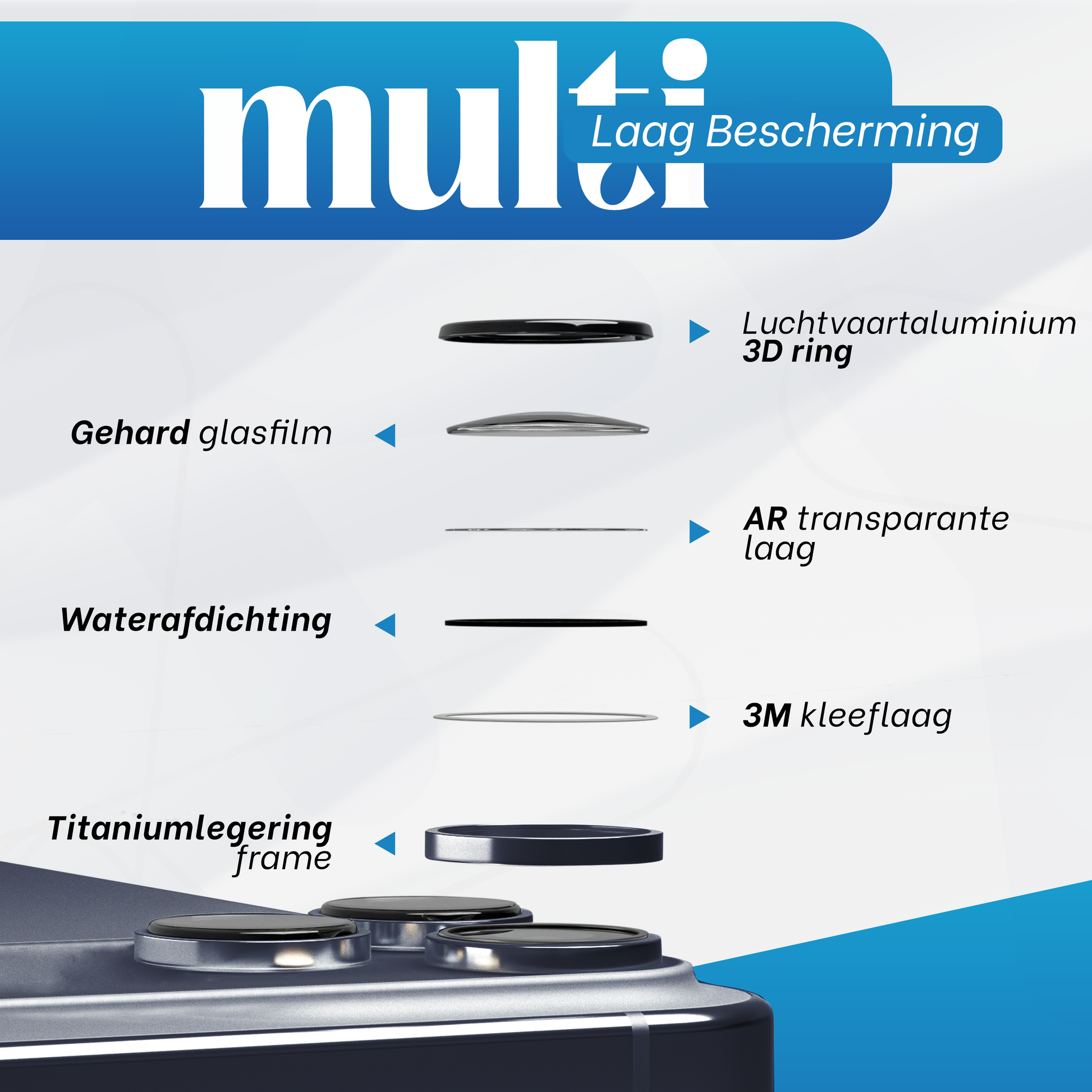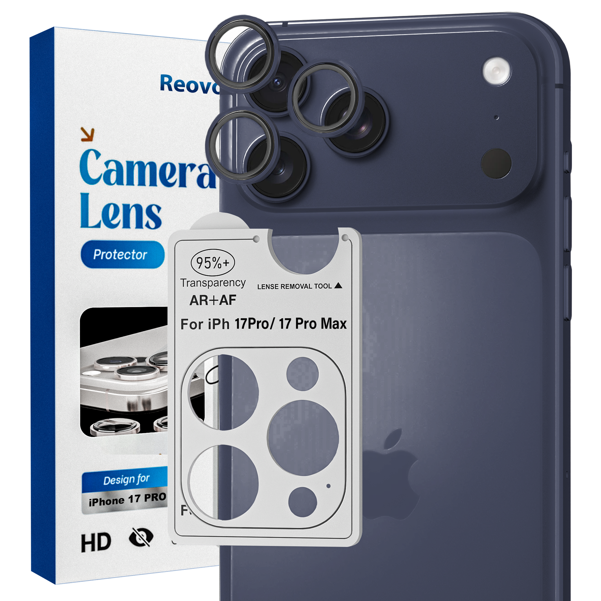 De REOVO Camera Protector voor iPhone 17 Pro combineert een ultra-dunne 0,05 mm laag met een stevig titanium frame, waardoor je camerasysteem optimaal beschermd is tegen krassen en schokken zonder bulk toe te voegen. De Diep Blauw afwerking geeft een stijlvolle uitstraling, terwijl de nauwkeurige pasvorm de originele camera-functionaliteit behoudt. Ideaal voor gebruikers die maximale bescherming zoeken zonder compromis op design of gebruiksgemak.